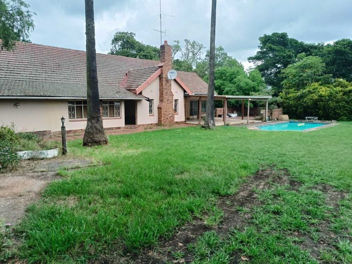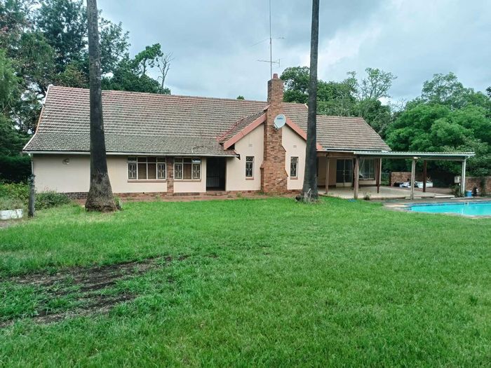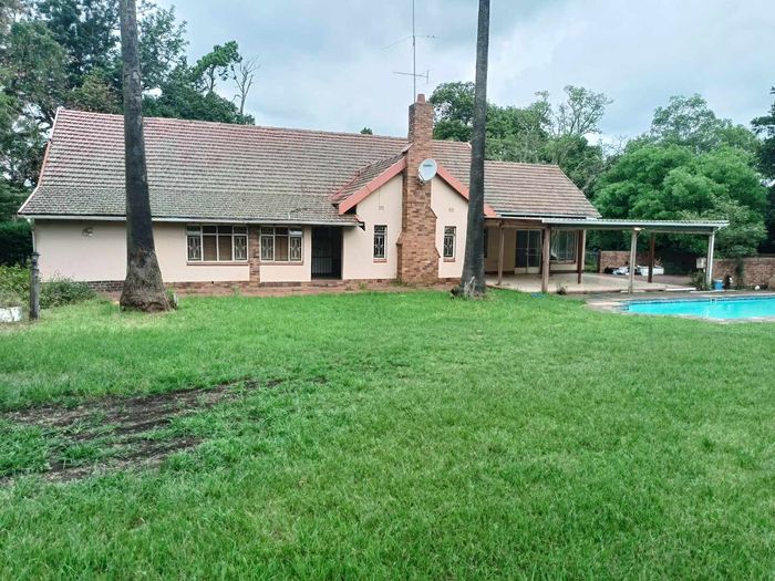 Fertile 25,149m² holding in secure Foxhill Farm — ideal for small-scale farming or livestock, with multiple income-producing dwellings, covered braai patio, swimming pool and ample parking.